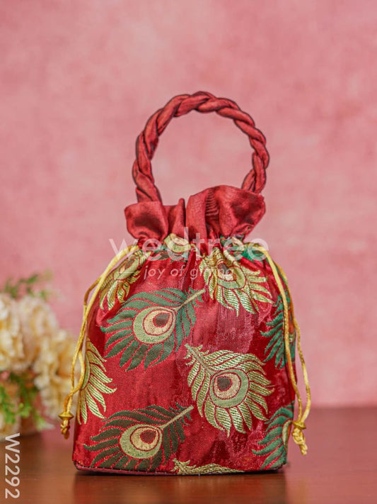 Raw Silk Potli Bag with Peacock Feather Embroidery - W2292