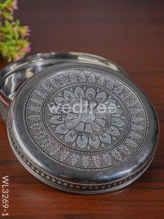 Silver Oxidised Floral Design Poori Box - WL3269