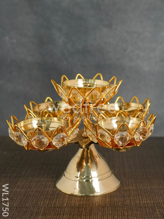 Brass Coated 5 Crystal Diya - WL1750