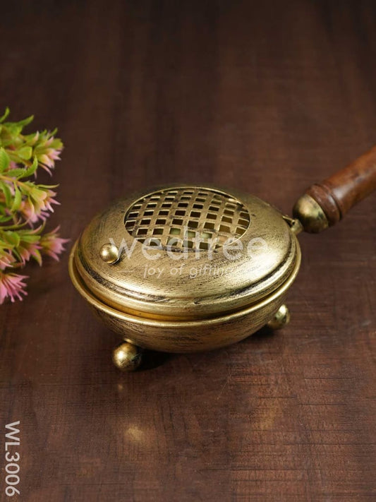 Brass Coated Dhoop Dhani with Wooden Handle - WL3006