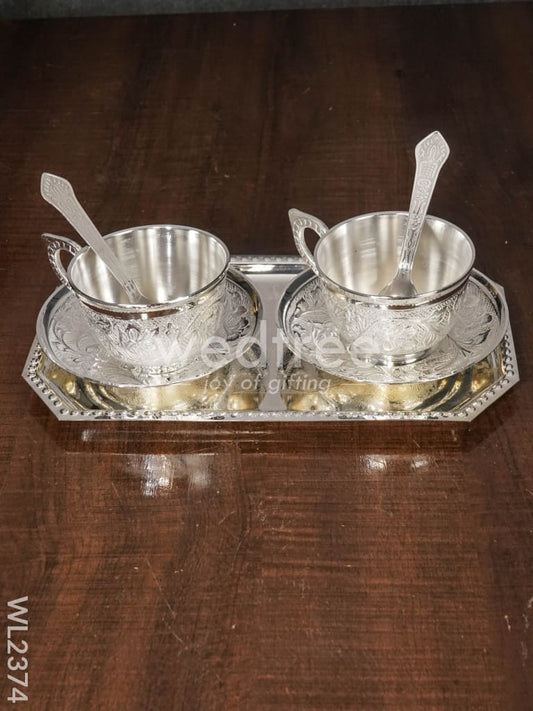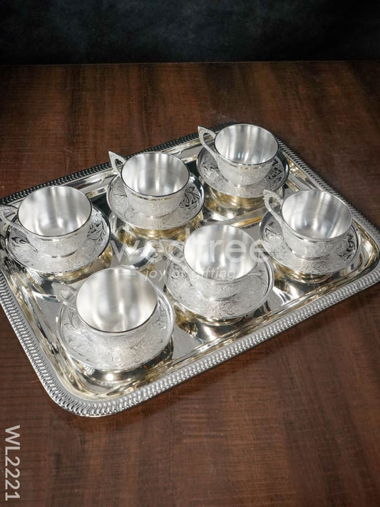 Brass Cup and Saucer with Tray Set - WL0064