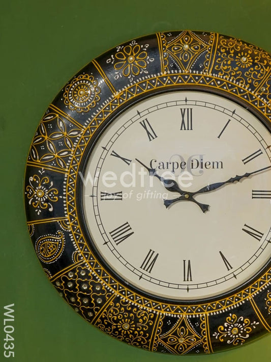 Wall clocks -Hand painted with Black floral prints & stone work (12 inches) - WL0160-1