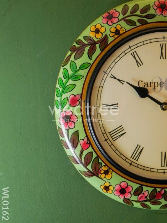 Wall clocks - Hand painted with Green and red floral design (12 inch) - WL0158