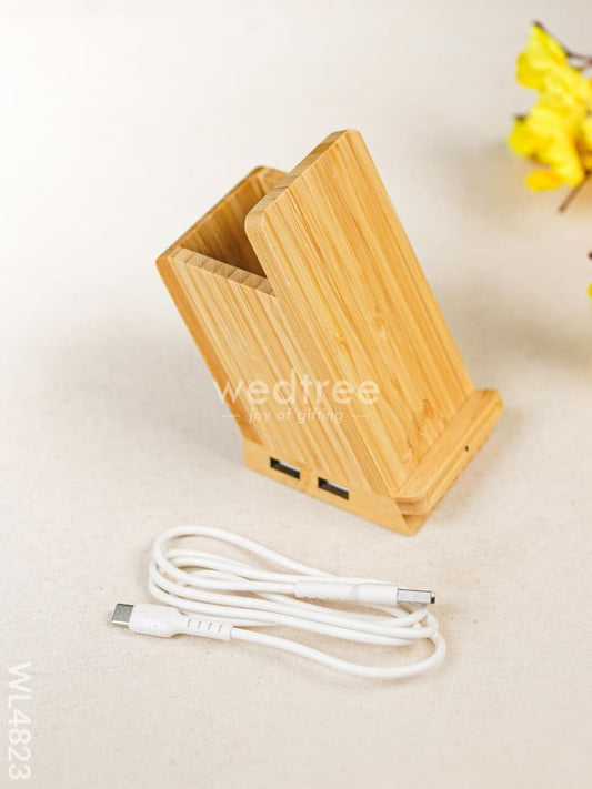 Wangari - Bamboo Wireless Charger with Pen Stand & USB - 15W - WL4823