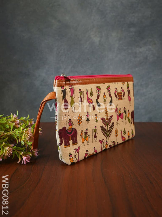 Warli Printed Jute Bag with Horizontal Stripes - WBG0090