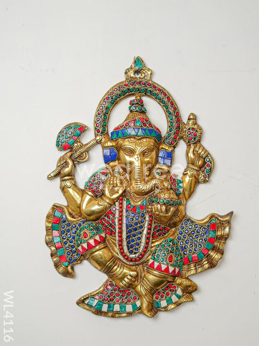 Brass Ganesha Wall Hanging with Stonework & Tile Work - WL4116
