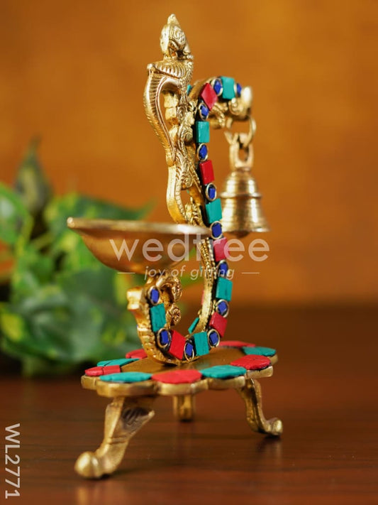 Brass Lotus Diya with Chowki & Stone Work - WL2771
