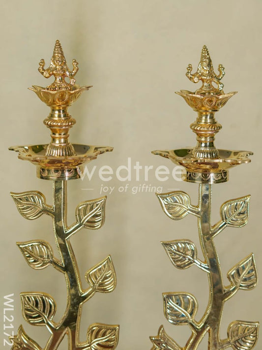 Brass Lotus Shape Kuthu vilakku with Lakshmi Five face Diya ( set of 2) - WL2172