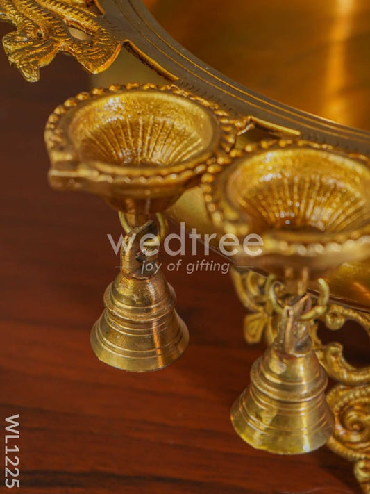 Brass Peacock Urli with Diya and Bells - WL1225