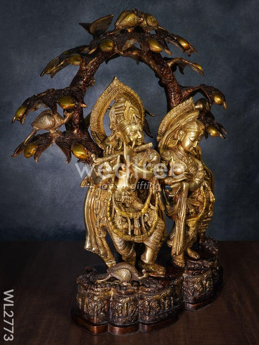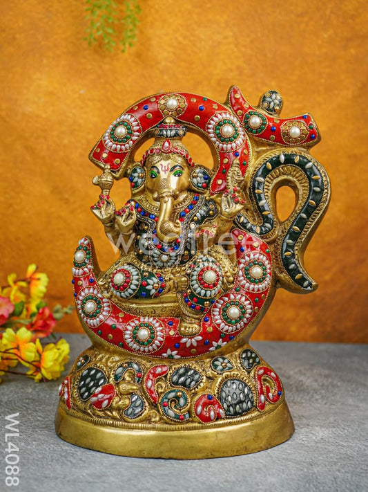 Brass Seated Ganesha Idol with Multicolour Stone Work - WL4088