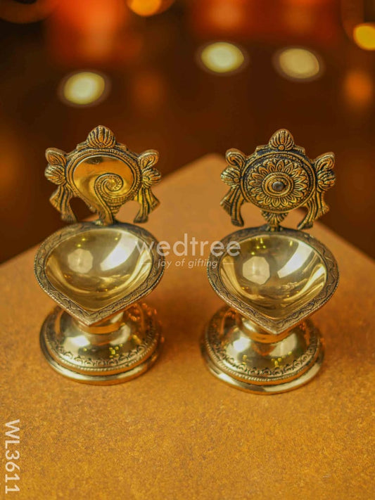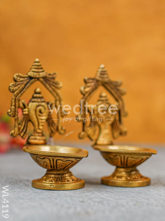Brass Shanku Chakra Diya with Stand - Set of 2 - WL3611