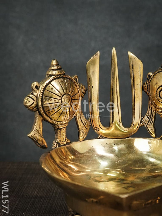 Brass Shanku Chakra Naama Five Face Diya - Set of 3 - WL2635