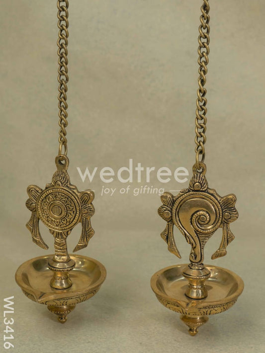 Brass Shank Chakra Hanging Diya - Set of 2 - WL3416