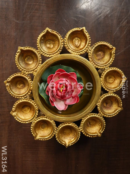 Brass Urli with Diya and Bells - Stonework -WL4118