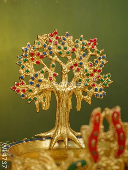 Brass Urli with Kalpavrisha Tree - 13 inch - WL4737