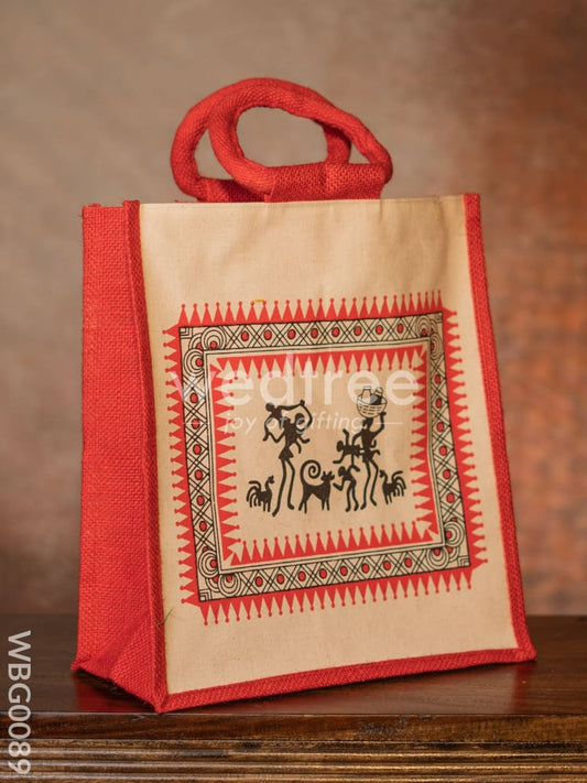 Canvas and Jute Bag with Warli Prints - WBG0089