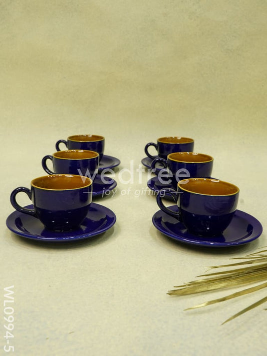 Ceramic Cup and Saucer Set - Blue with Brown Design - WL0994-5