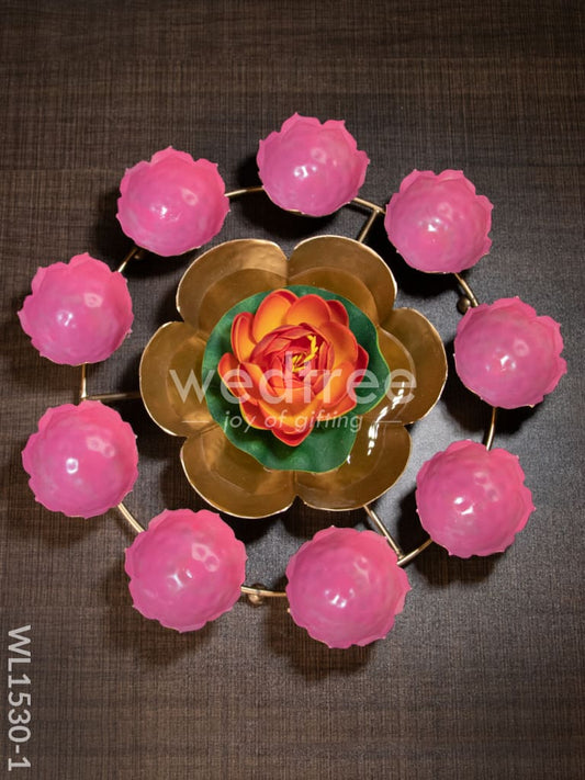 Decorative Iron Floral Shaped Urli with Tealight Candle Holders - WL1530