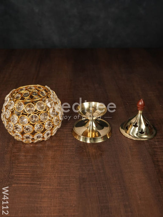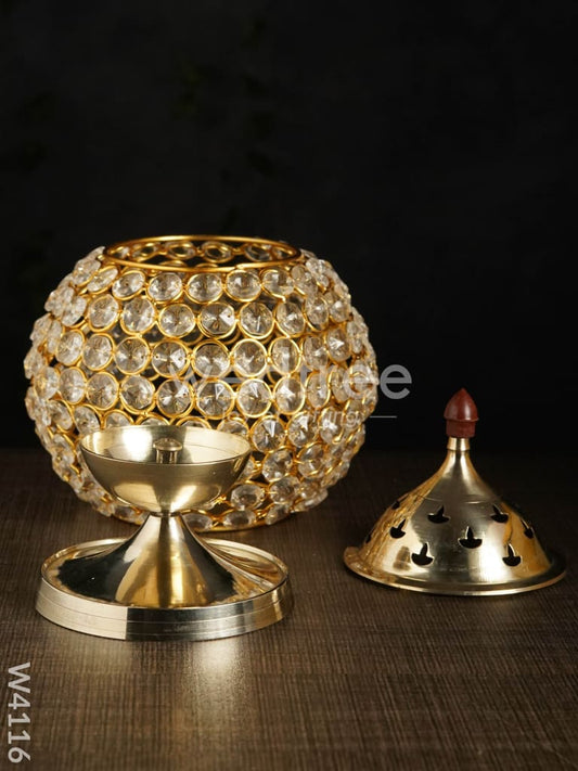 Decorative Matki shaped Crystal and Brass Diya - W4112