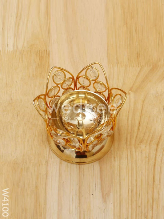 Decorative Lotus shaped Crystal and Brass Diya 3 inch - W4098