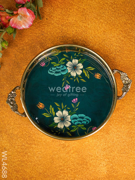 Floral Printed Brass Tray - 9 inch - WL4688