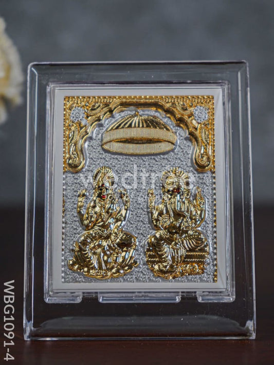 German Silver Plated Lakshmi Ganesha Photoframe (4.5 inch) with Stand - WBG1091-4