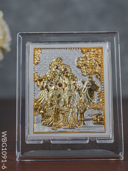 German Silver Plated Radha Krishna Photoframe (4.5 inch) with Stand - WBG1091-6