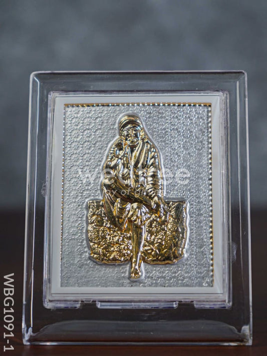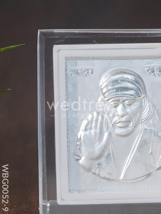 German Silver Plated Sai Baba Photoframe (4.5 inch) with Stand - WBG1091-1