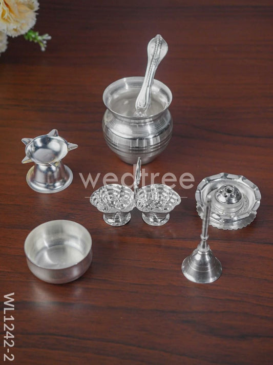 German Silver Pooja Thali Set - 6 inch - WL1204