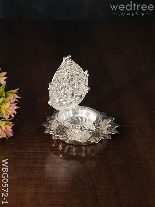 German Silver Sunflower Base Ganesha Diya - WBG0572