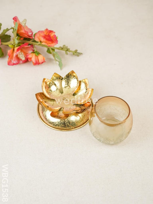 Gold Foil Stand with Cracked Glass Candle Holder - WBG1538
