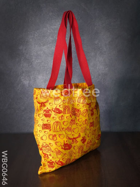 Handbag Yellow Silk Fabric with Purple Handle (11 X 13) - WBG0646