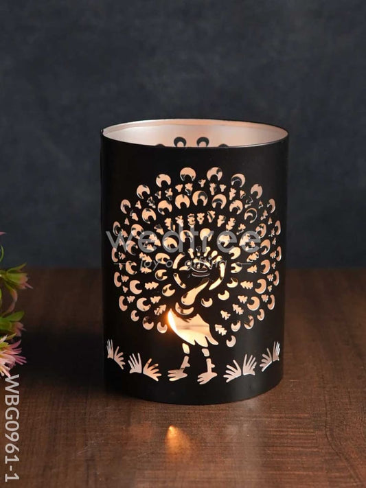 Handcrafted Votive with Peacock Design in Jhaali Pattern - Big - WL3115