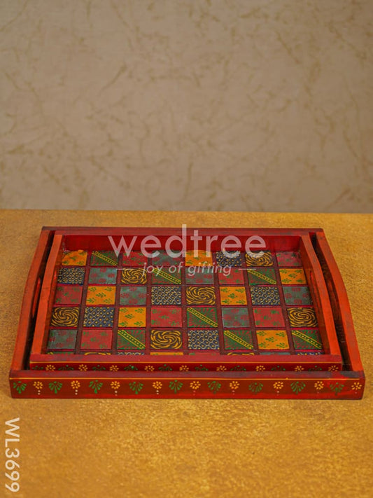 Handpainted Wooden Tray - Set of 2 - WL3699