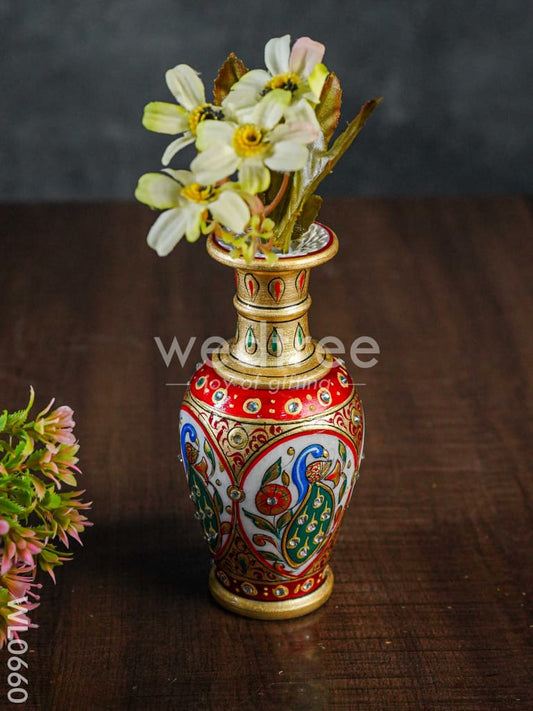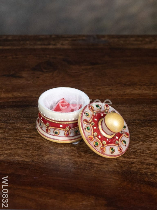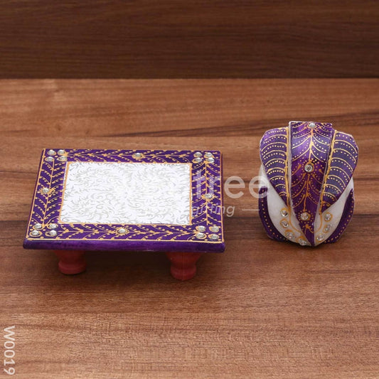 Marble - Hexagon Shaped chowki with peacock design and ganesh 4 inch - W2860