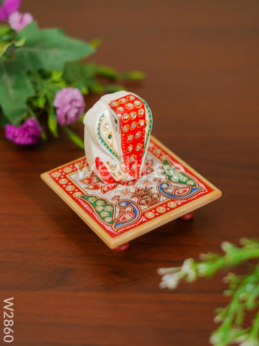 Marble - Ganesha with Hexagon Shaped Chowki - W2859