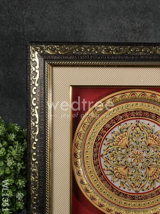 Marble Painted Round Floral Thali Frame : 9 Inches - WL1351