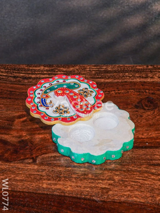 Marble round shape ganesha kum kum holder - WL0774