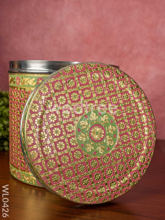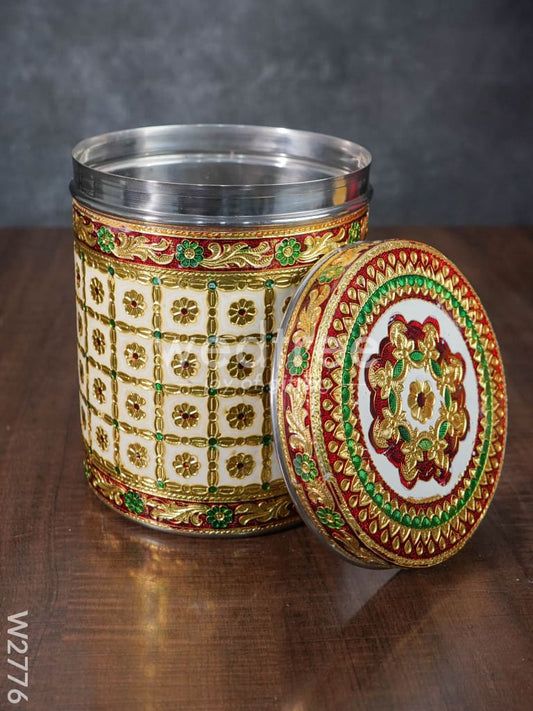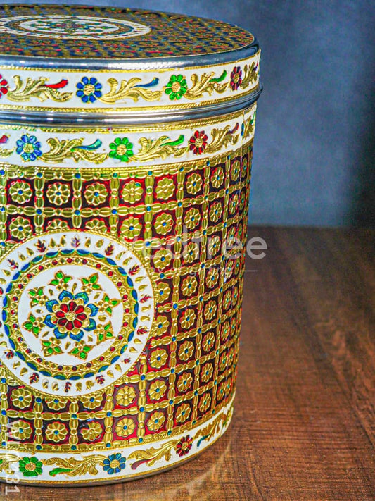 Meenakari Drum with Lid - Red - 10 inch - WL3245-1
