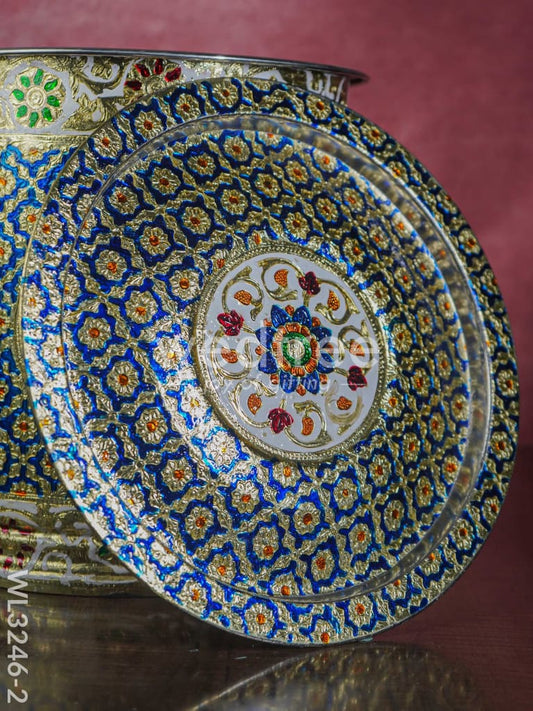 Meenakari Drum with Lid - Blue - 12 inch - WL3246-2