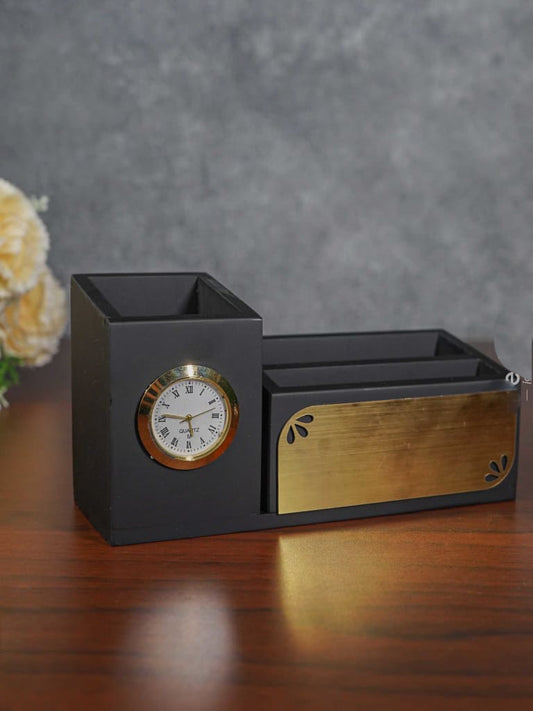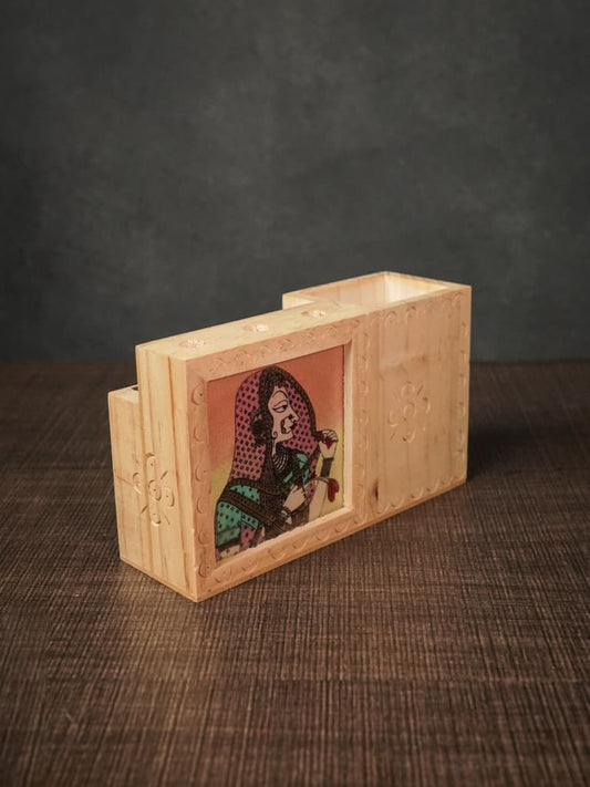 Wooden Hand Painted Pen Stand with Card Holder - BCG0113