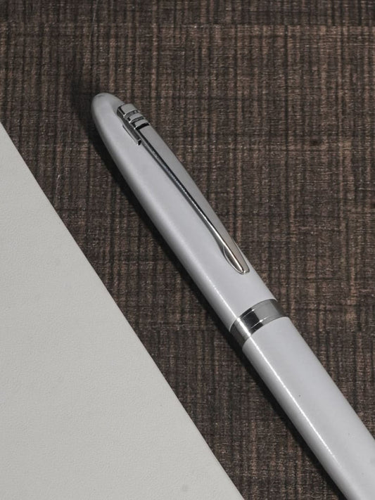 White with Silver Finish - Roller Ball Point Pen - BCG0159