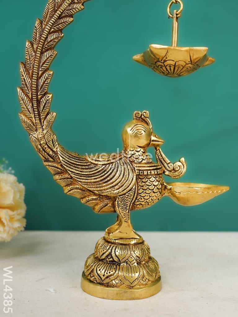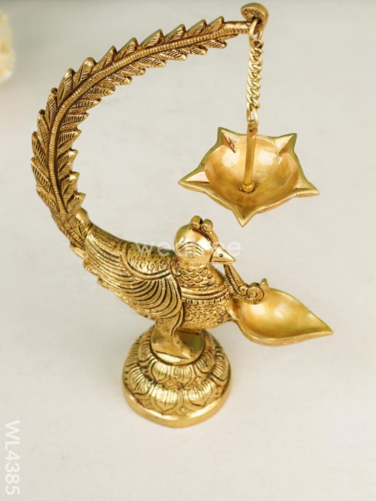 - Featuring an elegant annam bird design, the Brass Annam Bird Diya with Hanging Diya is a beautifully crafted traditional Indian oil lamp.
