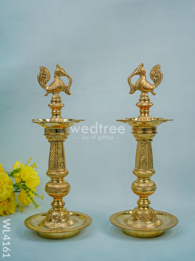 Brass Annapakshi Kuthu Vilakku with 5-Face Diya - 16 inch - WL4161