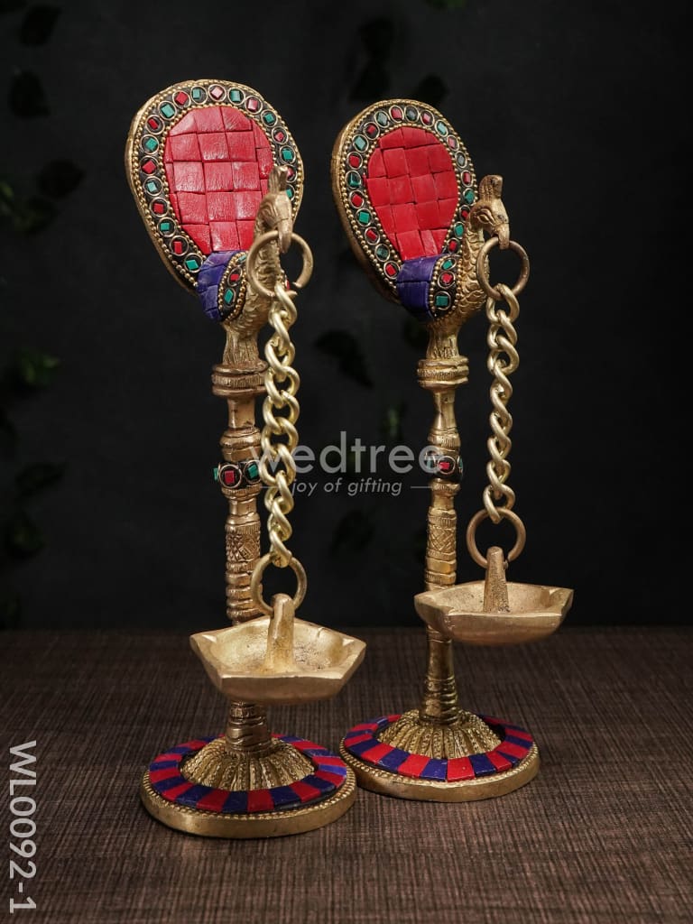 Brass Peacock Stand with Diya (Set of 2) - WL0092