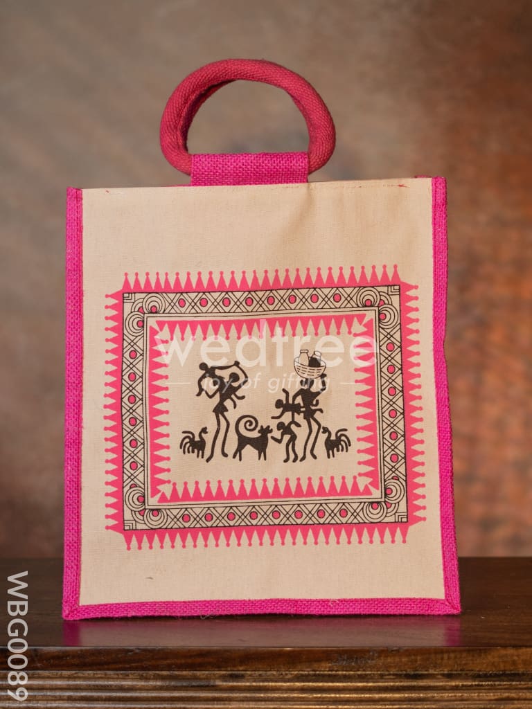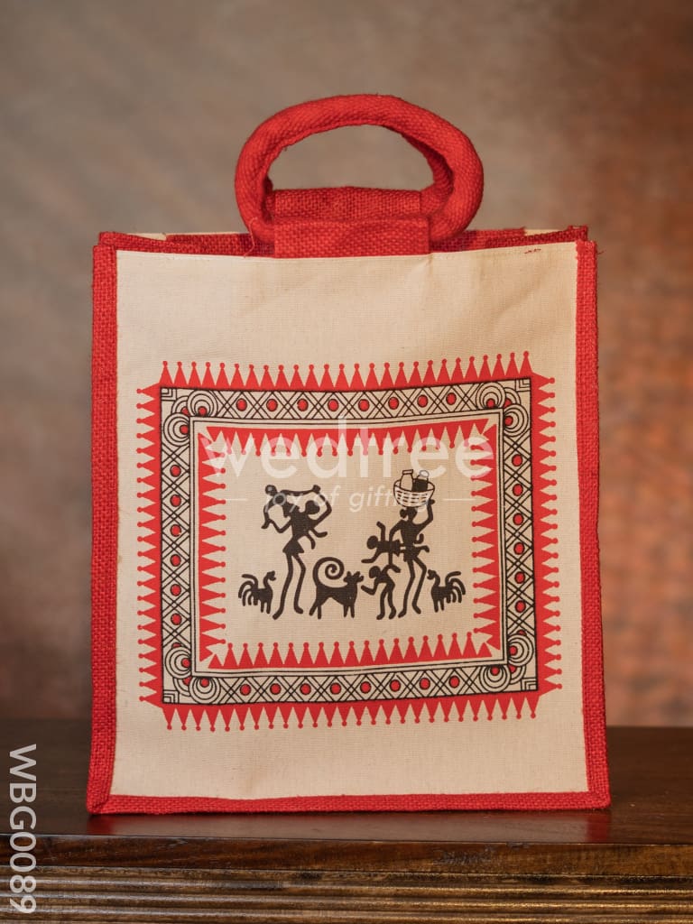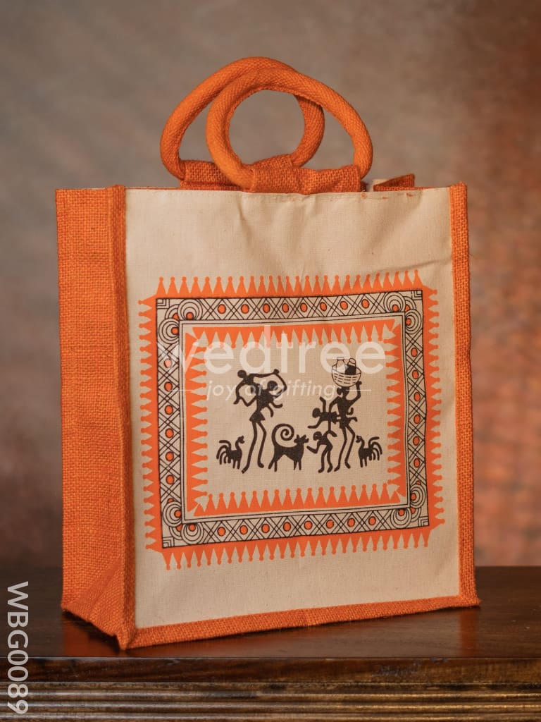 Canvas and Jute Bag with Warli Prints - WBG0089