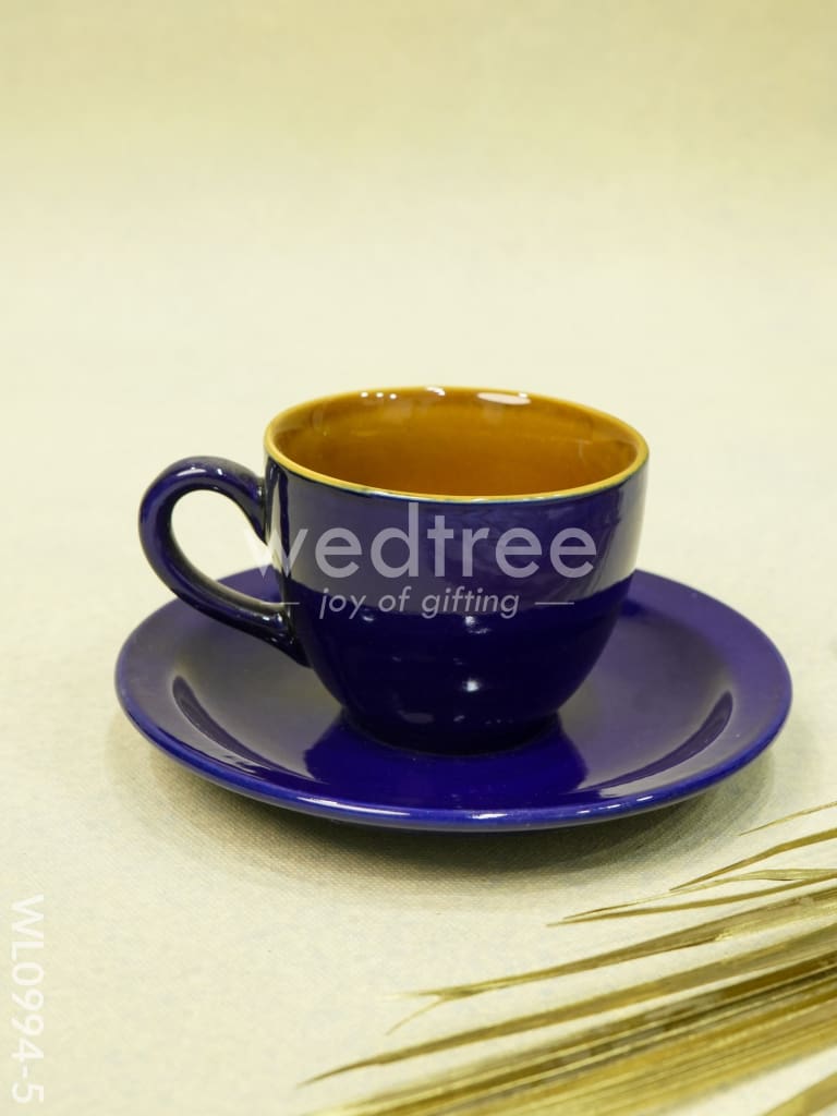 Ceramic Cup and Saucer Set - Blue with Brown Design - WL0994-5