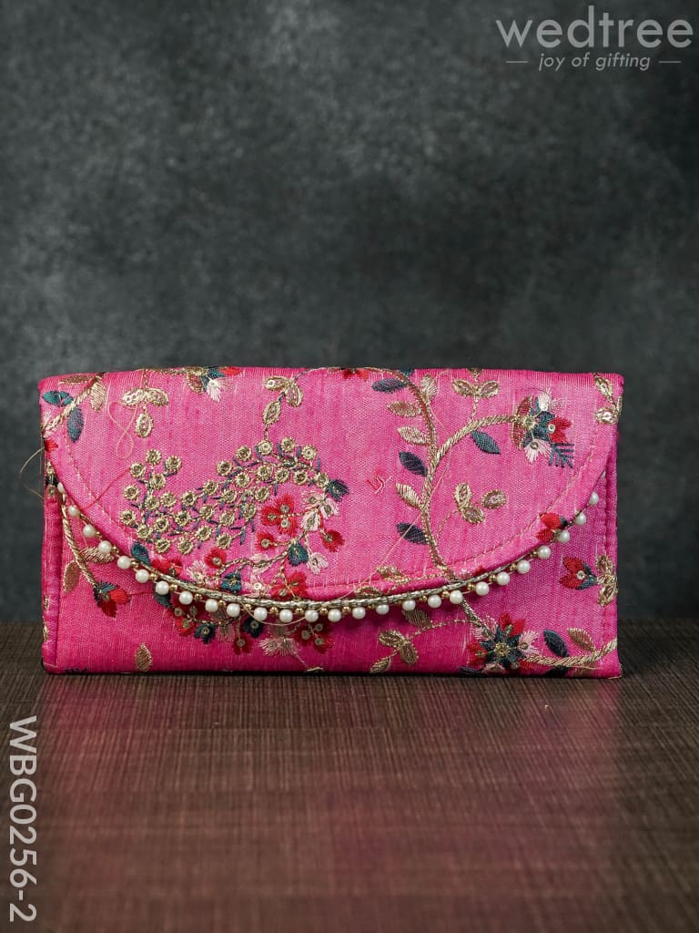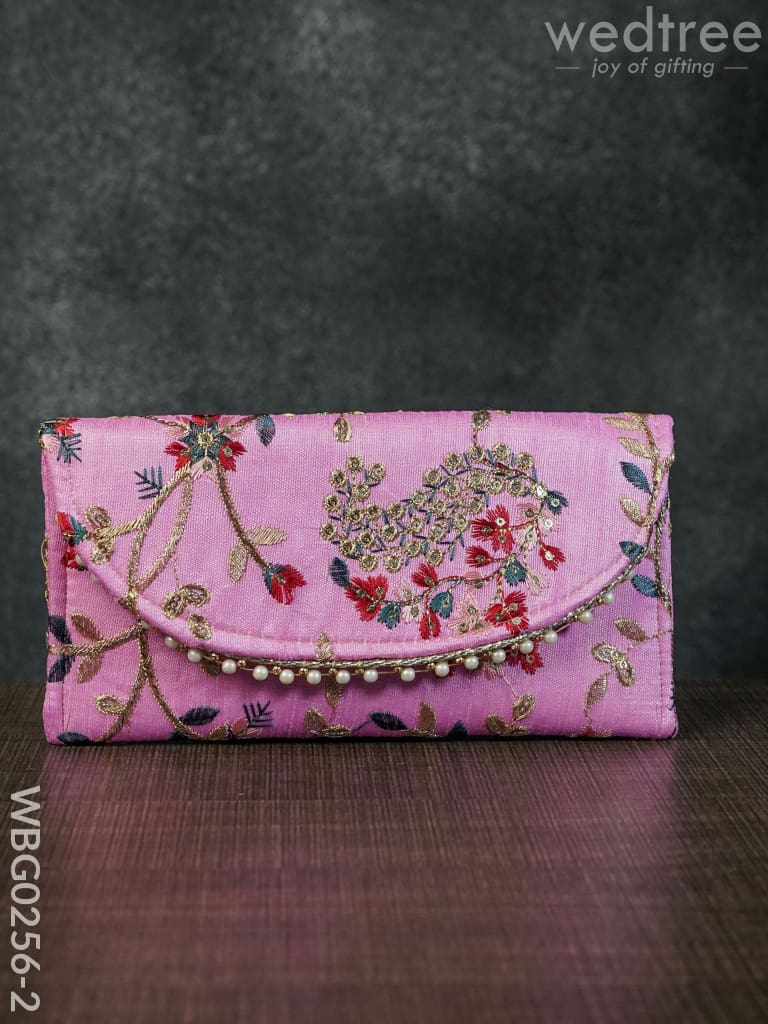 Clutch Purse with Floral Design and Chamki Work - WBG0256-2