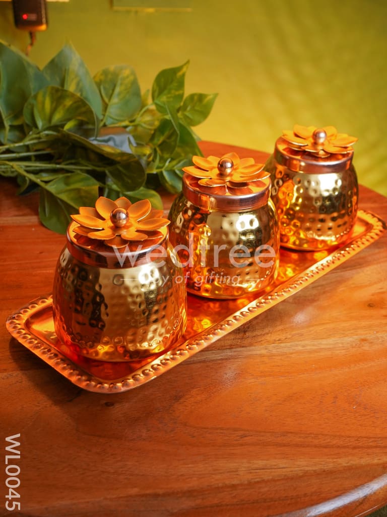 Check out this multi-purpose Brass dry fruit boxes with Copper plate. You are free to use it for anything and everything you want. To store dry fruits, this plate with 3 containers is a fantastic option to go with.