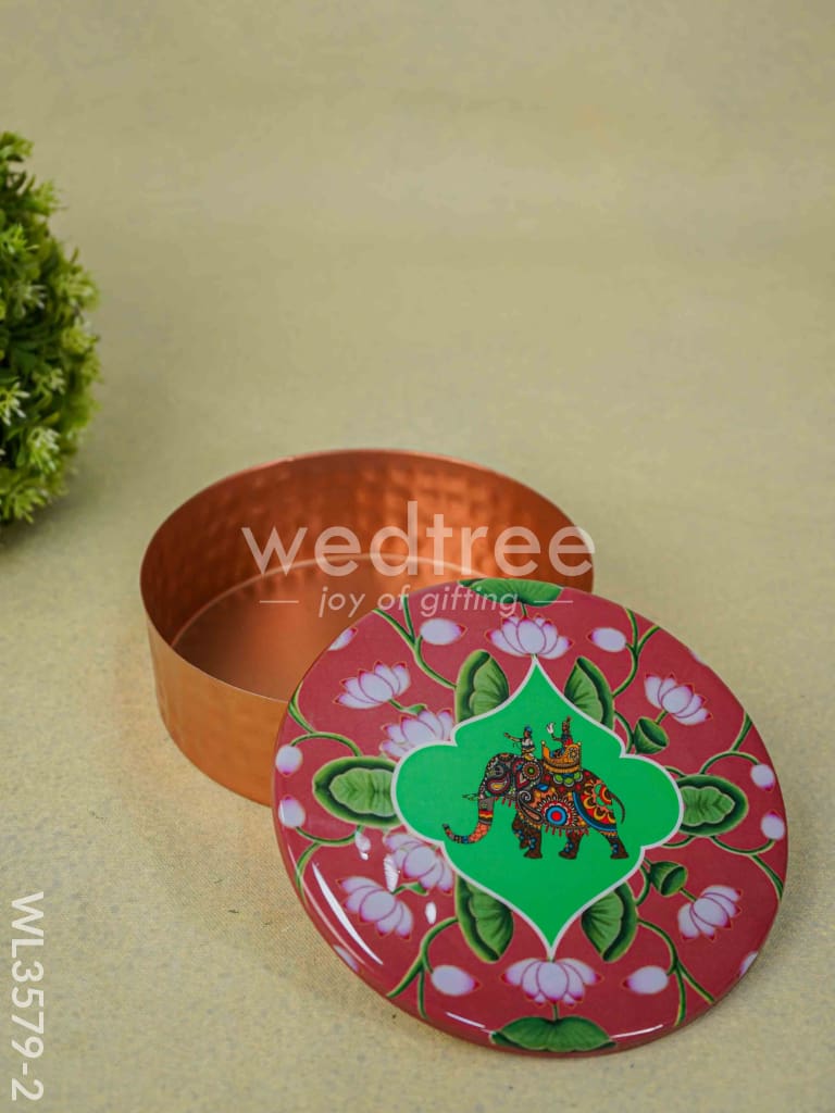The copper body and lid with decorative Pichwai prints are perfect gifting option for special occasions such as weddings or birthdays. The box is also easy to carry!